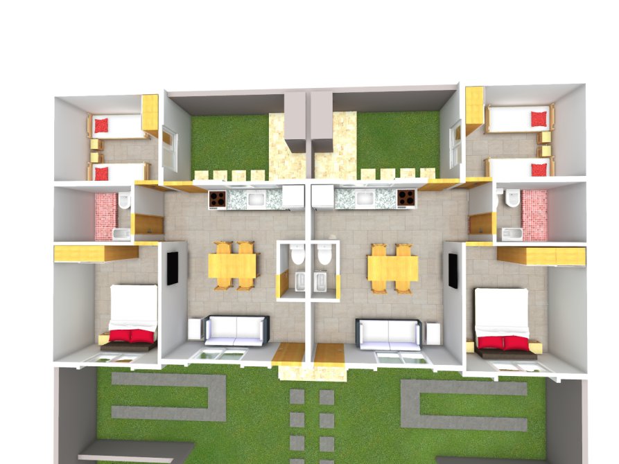 Este proyecto cuenta con 4 viviendas familiares , todas en una sola planta.
